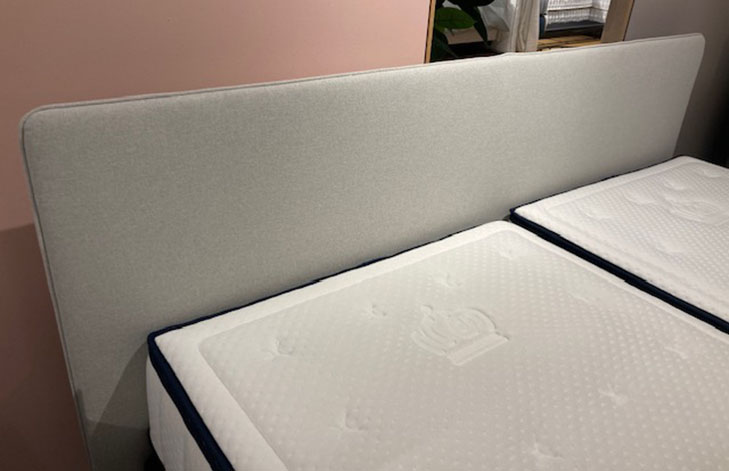 KOPPELVERKOOP: Auping Original bed in hoge uitvoering (180×200 cm) in de kleur Cool Grey, met verhogingspoten in dezelfde kleur, vlakke spiraalbodems en het hoofdbord Outline (95 cm) in stofcategorie B Points.